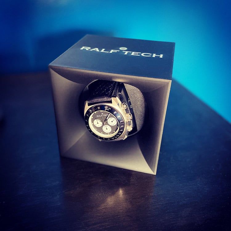 Afin de garder sa précision et prolonger sa durée de vie, une montre automatique doit toujours être en mouvement. Cet écrin SWISS KUBIK joue sur le rappel des couleurs RALF TECH et sur la modernité épurée des lignes. Simplifié à l’extrême, ce remontoir est un concentré des éléments essentiels du savoir-faire des deux marques. Son revêtement Soft Touch, lui confère une douceur incroyable au toucher. Conçu et fabriqué à la main d’un bout à l’autre de la chaîne de valeur, ce remontoir allié respect de la tradition Suisse et capacité d’innovation.
