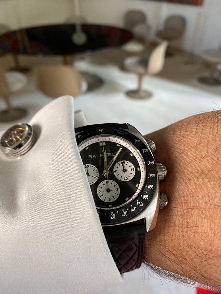Dernière née de notre maison, la WRV Chronographe Automatique «Tachymètre» reprend l’esprit classique et élegant de la WRV à travers un Chronographe à roue à colonnes sophistiqué de haute précision. Cette version «Tachymètre» séduira les amateurs d’automobiles sportives et classiques. Ici en version Panda inversé.