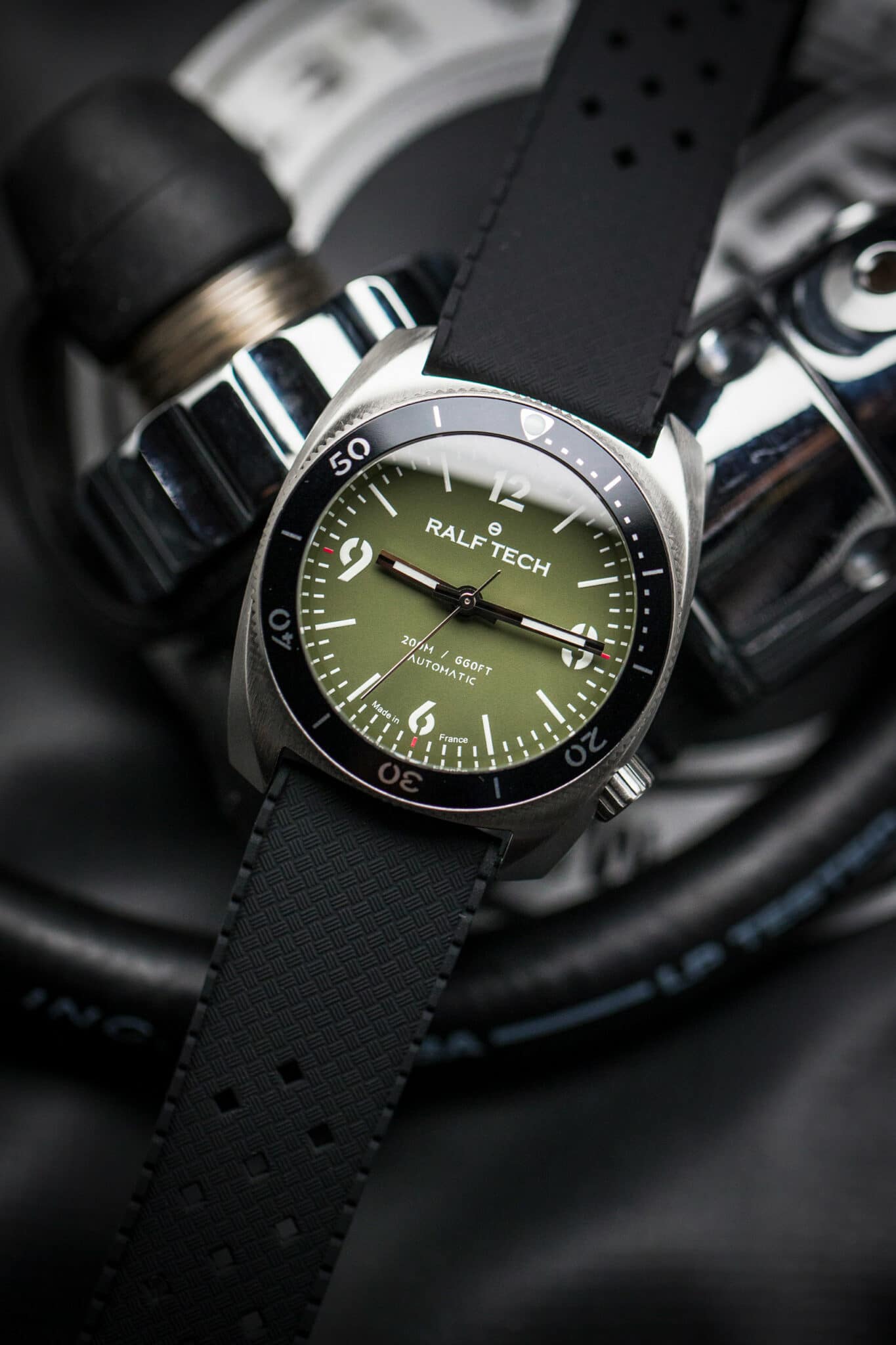 - Black anodized aluminium with triangle pointer and SuperLuminova® BGW9 insert